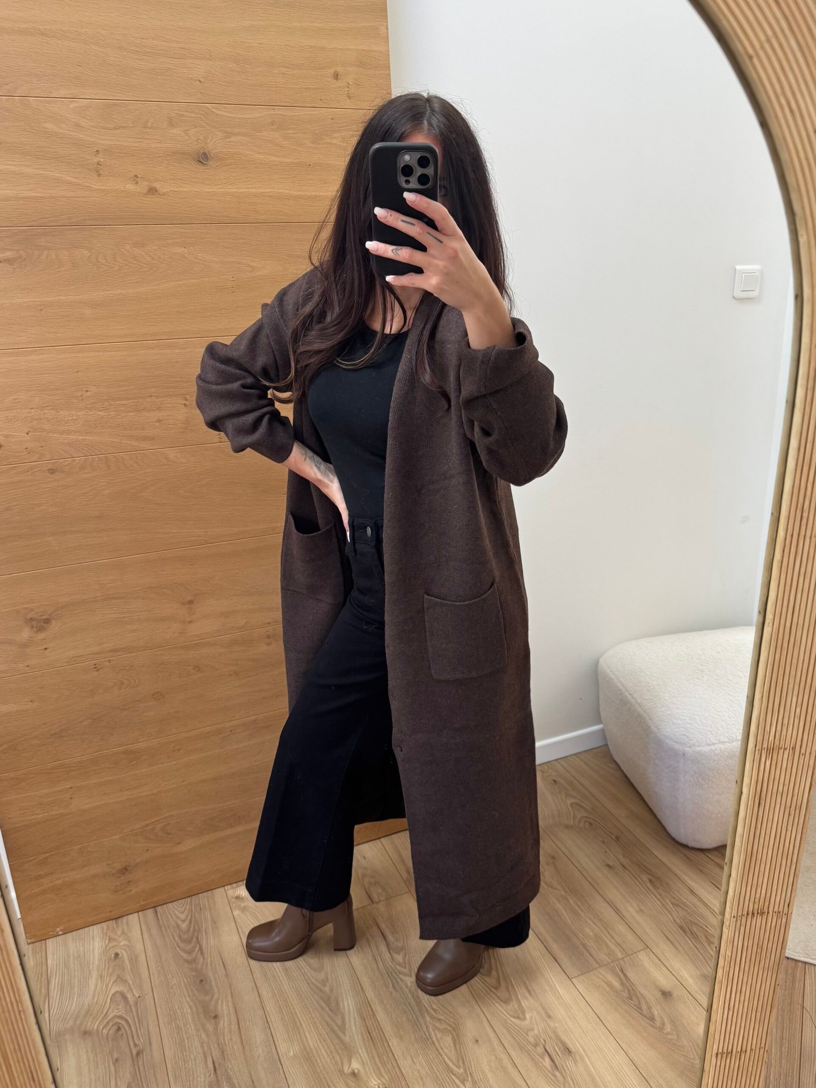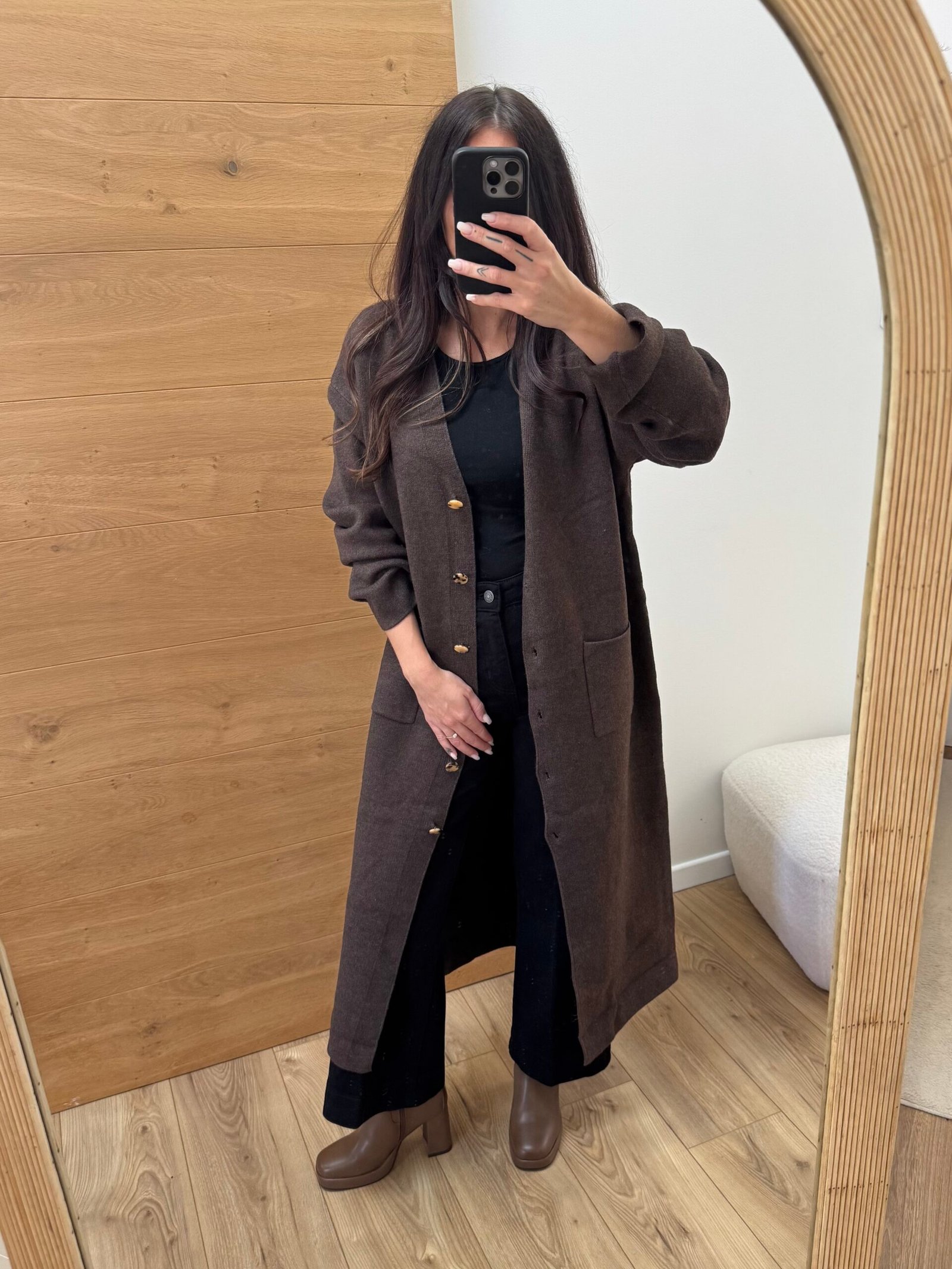 Gaia – Cardigan long en maille douce Chocolat