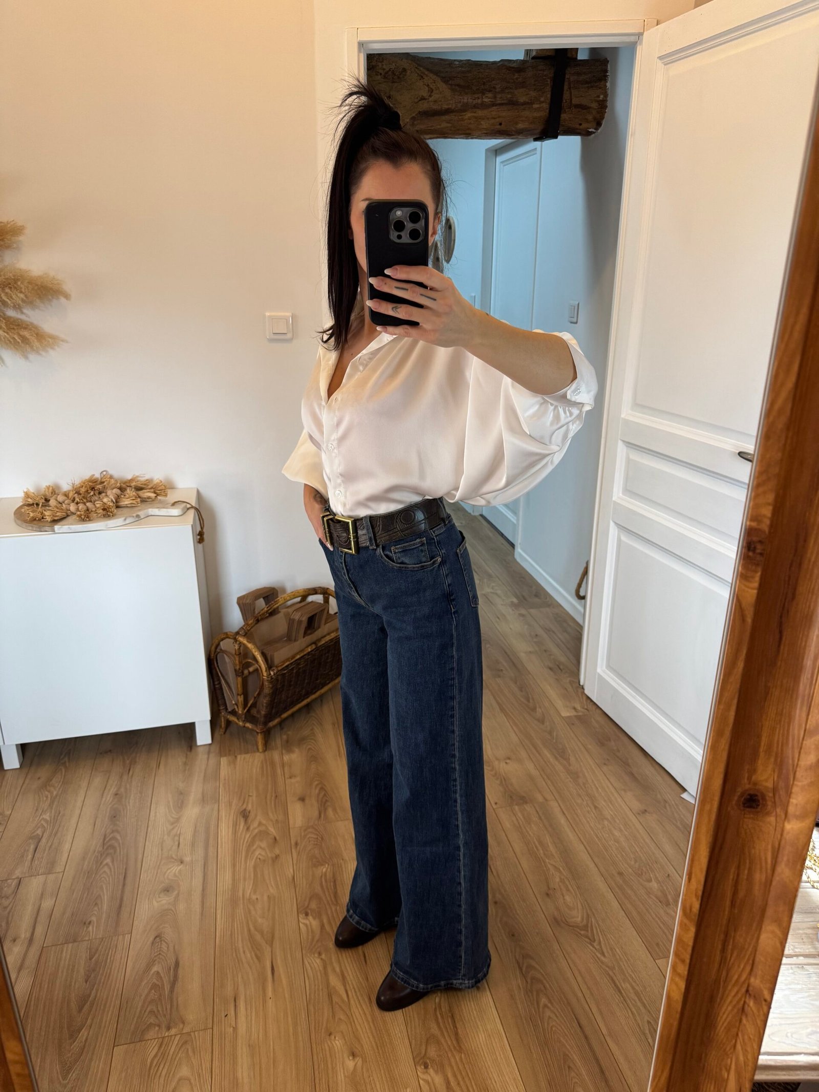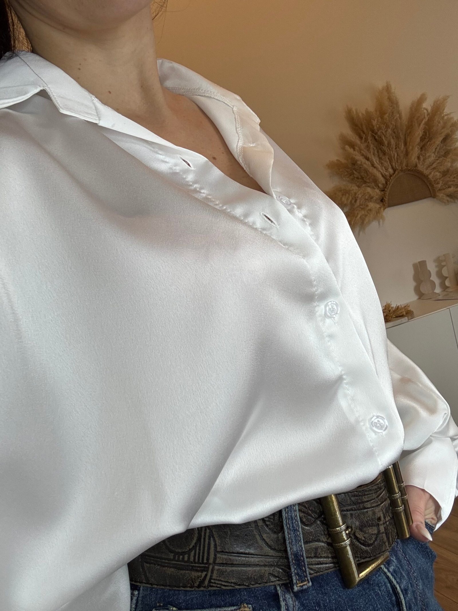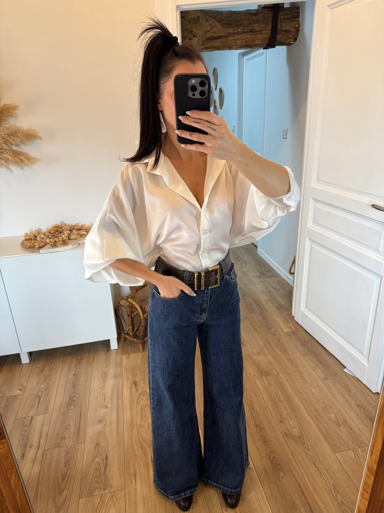 Inaya – Chemise oversize satinée & manches amples Blanche