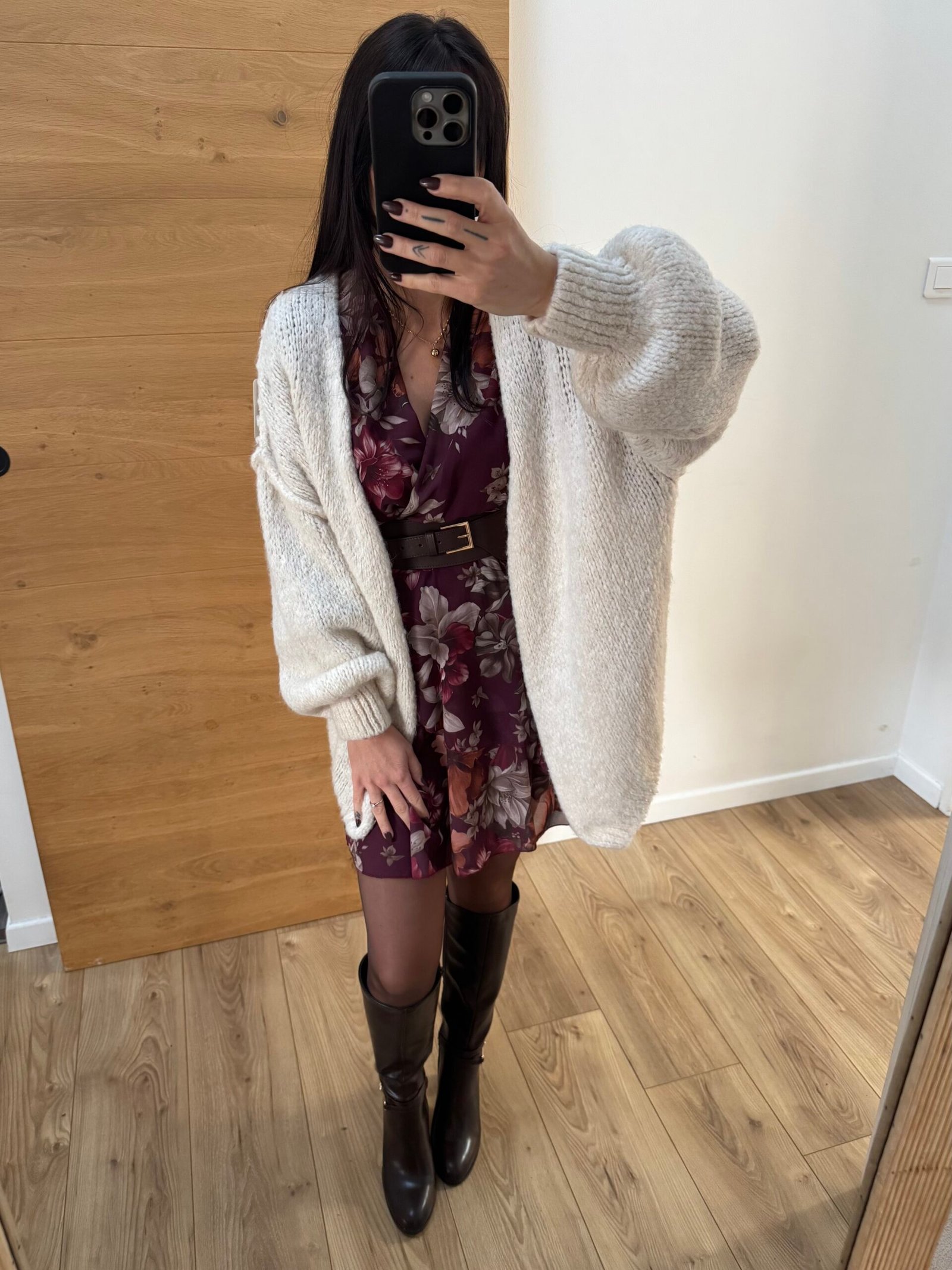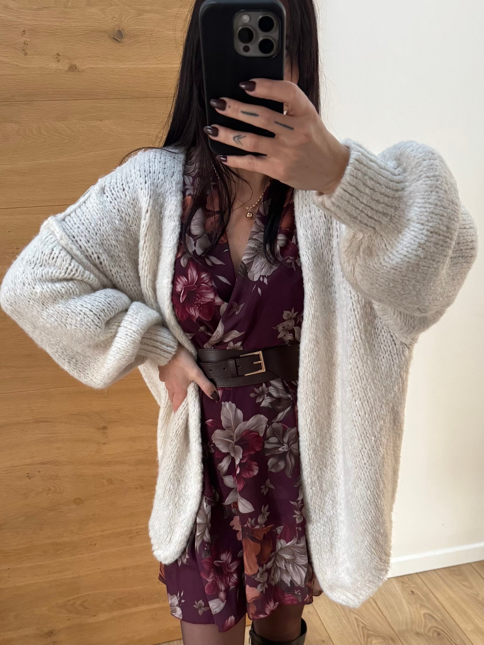 On craque pour IRIS, une veste en maille oversize toute douce, avec ses manches bouffantes et ses coutures apparentes qui apportent une touche moderne et féminine.
